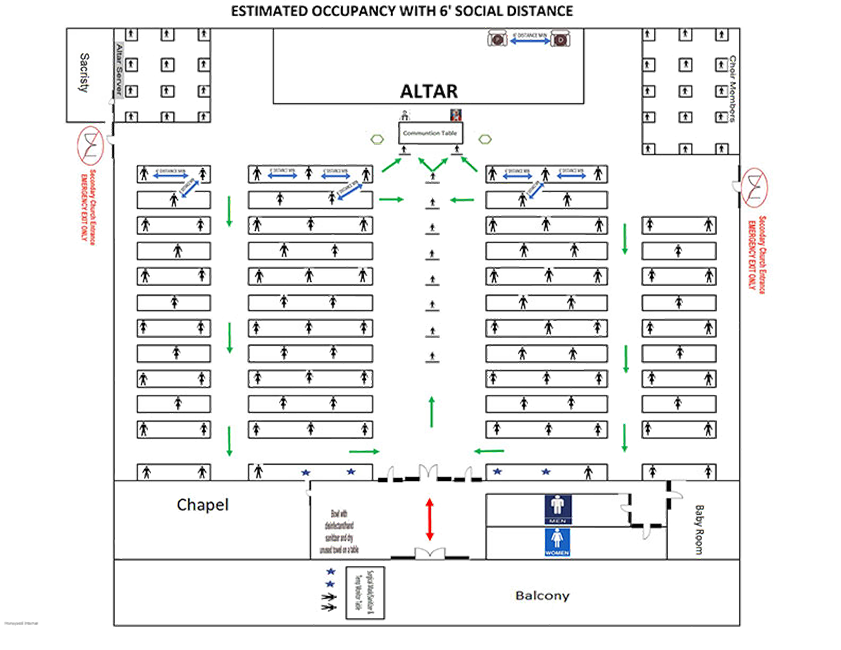 (1) Tham gia vào ban Thiện nguyện lau ghế và Nhà Vệ Sinh (2) Giữ khoảng cách 6 feet khi rời khỏi Nhà Thờ và tại Parking (3) Trật tự ra khỏi Nhà Thờ như sau: Giữ khoảng cách 6 feet
