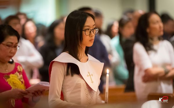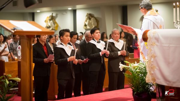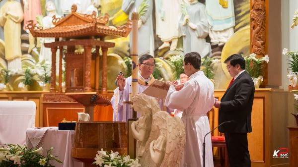 Giáo xứ long trọng cử hành Đại Lễ Mừng Chúa Phục Sinh trong niềm hân hoan đón nhận 3 tân tòng và một thiếu nữ lãnh nhận Bí tích Rửa tội, Bí tích Thánh Thể ngay trong Đêm Cực Thánh này.
