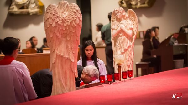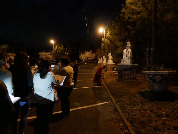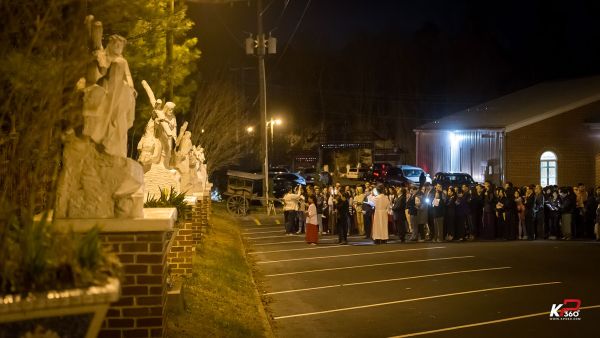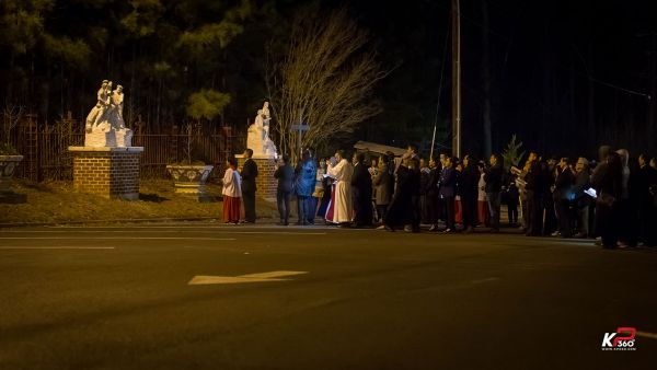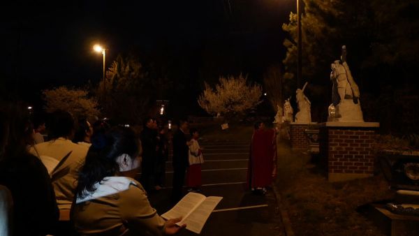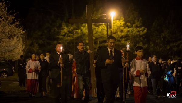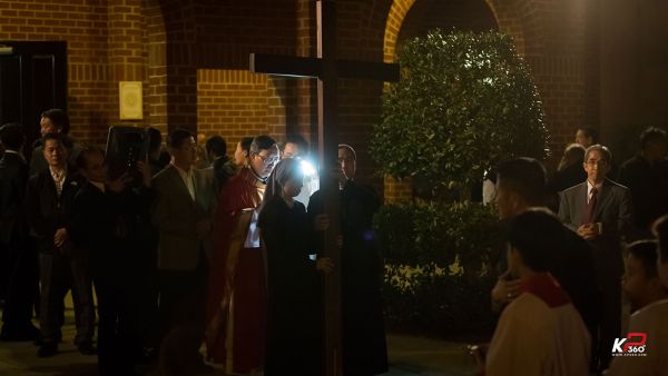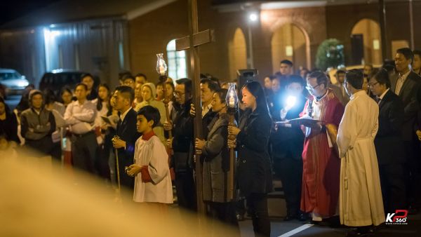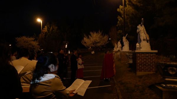 Giáo xứ bước vào cuộc tử nạn của Chúa Giêsu tối thứ Sáu Tuần Thánh với nghi thức suy tôn và hôn kính Thánh Giá, để thấm thía những lời Người nói trong bữa Tiệc ly: “Đây là máu Giao ước của Thầy, đổ ra cho muôn người.” ( x. Mc 14,24) Trời đêm se lạnh như muốn góp phần vào tâm tình của các gia đình trong giáo xứ trên 14 chặng đàng Thánh Giá tối nay ...